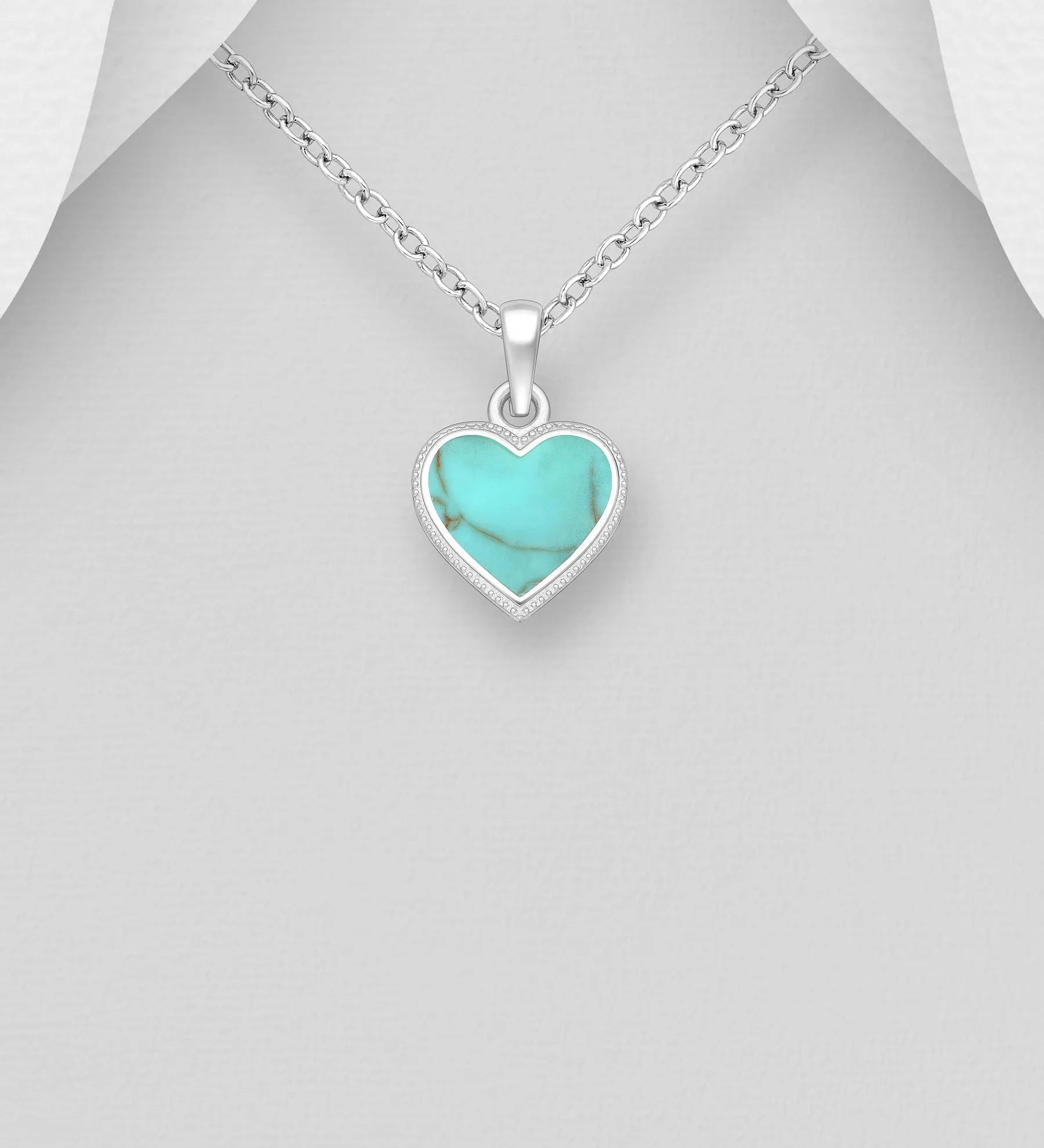 ✨ Heart Pendant Necklace – 925 Sterling Silver Turquoise & Black ✨