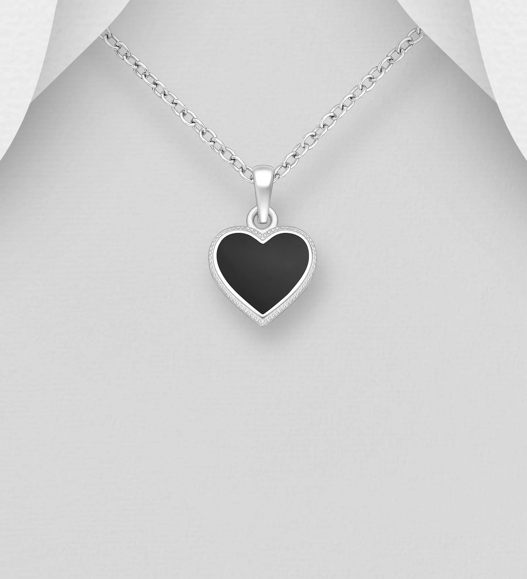 Heart Pendant with 18 - 20 Inch Chain – Hand-poured resin enamel, 925 Silver Necklace